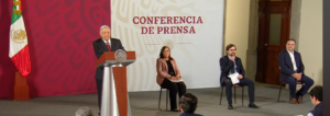 El presidente estuvo acompañado por los titulares de la Secretaría de Energía (Sener), Roció Nahle, y de Petróleos Mexicanos (Pemex), Octavio Romero, quienes acudieron a Palacio Nacional a presentar el resultado de las negociaciones que tuvo México en la OPEP para limitar la producción de petróleo a nivel mundial.