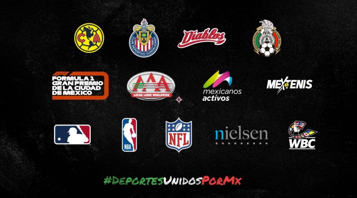La alianza “Deportes Unidos por México” está conformada por Club América, Club Deportivo Guadalajara, Consejo Mundial de Boxeo (CMB), Diablos Rojos del México, Federación Mexicana de Fútbol, Fórmula 1 Gran Premio de la Ciudad de México, Lucha Libre AAA, Mexicanos Activos, Mextenis, MLB México, NBA México, NFL México y Nielsen.