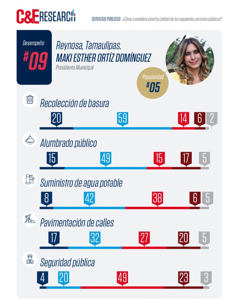 Cabe destacar que a pregunta expresa de los encuestadores: ¿si su actual alcalde quisiera reelegirse o buscar un nuevo puesto público votaría por el/ella en las elecciones del año 2021?, el mayor porcentaje de los reynosenses encuestados respaldan el proyecto y trabajo político de Maki Ortiz.