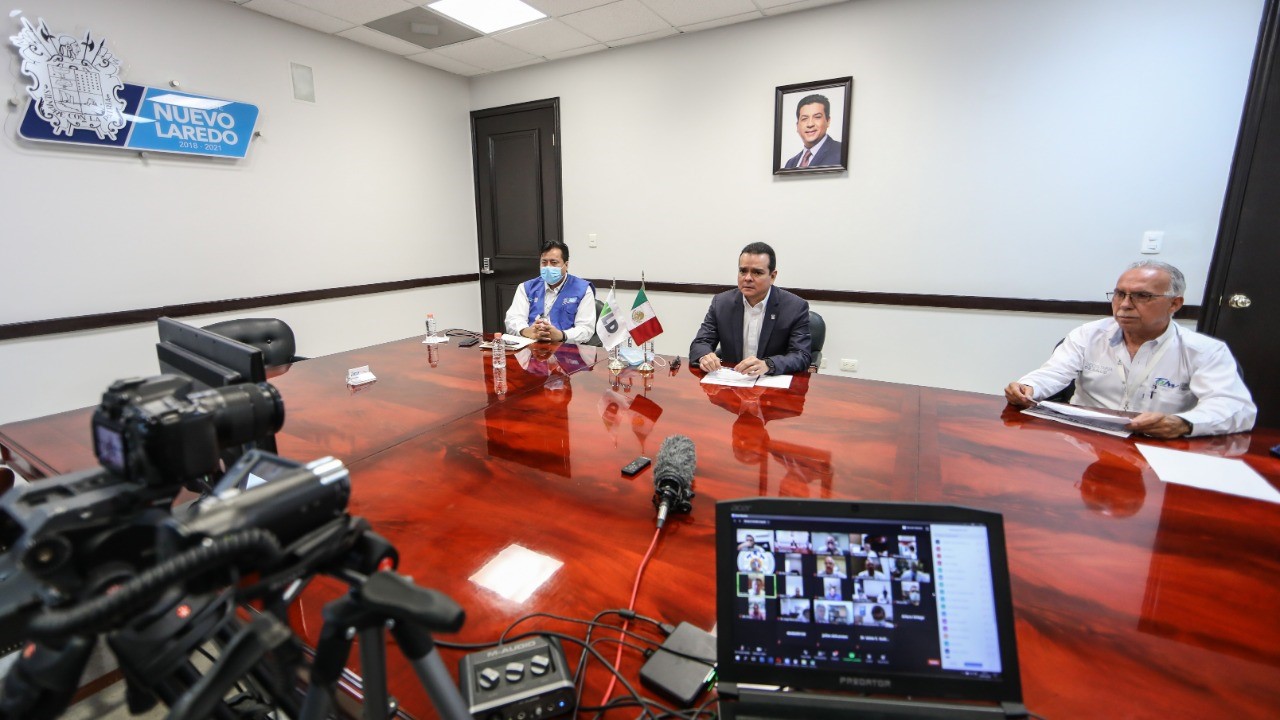 Nuevo Laredo, Tamaulipas, 20 de Mayo de 2020.- Autoridades de ambos Laredos compartieron acciones, procedimientos, estrategias e información relacionada con el manejo de los casos positivos por Covid-19, en la reunión virtual del Comité de Salud Municipal que presidió el alcalde Enrique Rivas.