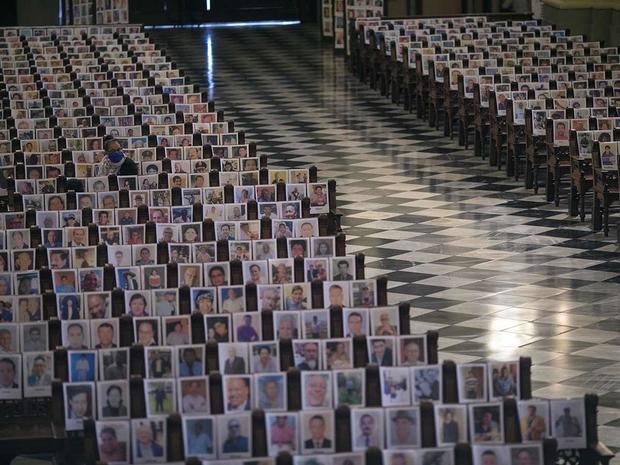 PERÚ.15 junio 2020.  El arzobispo de Lima, Carlos Castillo, criticó el sistema sanitario de Perú en una misa inédita sin feligreses, pero repleta de retratos de más de cinco mil personas que murieron a causa del nuevo coronavirus.