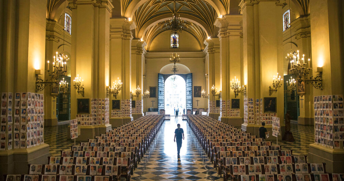 Es la primera vez en más de 400 años que en la catedral de Lima se realiza una misa vacía con retratos de víctimas de una pandemia. Castillo dijo que el sistema de salud peruano “está basado en el egoísmo y en el negocio y no en la misericordia y en la solidaridad con la gente”.