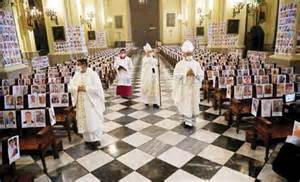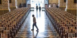 Desde el martes, el arzobispado imprimió miles de retratos que los familiares de los fallecidos enviaron al correo electrónico institucional, el cual terminó saturado tras la convocatoria.