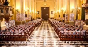Durante todo el sábado, el equipo de prensa del arzobispado colocó las fotografías en las 84 bancas de la catedral, pero al faltar espacio, Castillo ordenó colocar miles más en los muros.