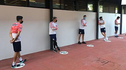 Uniformados con indumentaria de entrenamiento, todos los futbolistas rojiblancos aparecieron en los pasillos de Verde Valle, respetando la distancia correspondiente y dejando un espacio considerable entre cada uno de los elementos del plantel.