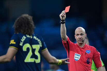 David Luiz vivió uno de sus peores partidos en la Premier. En el 46′, cuando el Arsenal ya daba por bueno el empate a cero al descanso, se tragó una pelota que aprovechó Sterling para marcar el 1-0 y romper una racha de 12 partido sin marcar, y en el 49′ completó su ‘obra’ con un penalti que le hizo de forma descarada a Mahrez, tras ganarle éste una carrera. Penalti, 2-0 y roja para el brasileño.