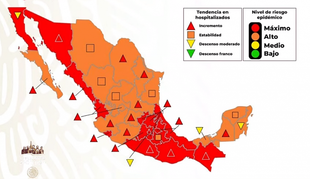 A pesar del avance de la pandemia, 16 de las 32 entidades federativas amanecerán el próximo lunes con el semáforo epidemiológico en color naranja