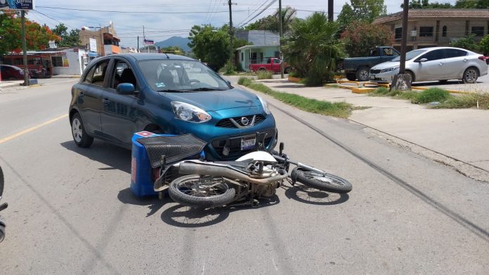 Cd. Victoria, Tamaulipas, 10 de Junio de 2020.- Cuando intentaba ingresar a una farmacia el conductor de un vehículo no tuvo la debida precaución y acabo siendo impactado por una motocicleta cuyo chofer resultó lesionado.