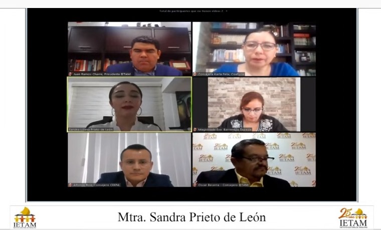 Cd. Victoria, Tamaulipas (11 de junio de 2020).- En el marco de la celebración del 25 aniversario del Instituto Electoral de Tamaulipas (IETAM) y con una excelente audiencia de participantes de manera virtual, este día se llevó a cabo la primera actividad con el tema denominado ““Foro del Procedimiento Especial Sancionador”.