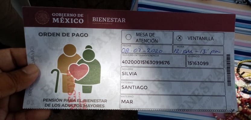 Cd. Madero, Tamaulipas, 20 de Julio de 2020.- .- Una persona de la tercera edad, quien cada dos meses recibe una pensión otorgada por el gobierno federal, señaló a un Servidor de la Nación del municipio de