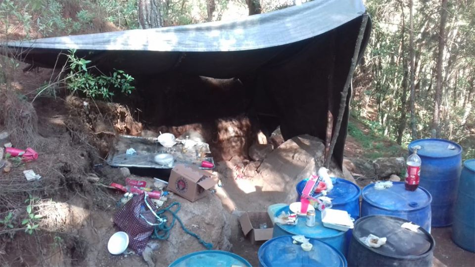 Logrando ubicar un campamento habilitado para el presunto robo de hidrocarburo, en el punto donde finalizaban las derivaciones de las tomas clandestinas señaladas, donde se aseguró lo siguiente: