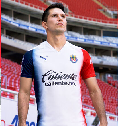 Guadalajara, México, 20 de Julio 2020. Chivas presentó sus nuevas indumentarias que utilizará para la próxima temporada 2020-2021, entre las cuales destaca la que será la camiseta de visitante, una prenda en su mayoría de color blanco, pero en los costados y mangas con colores rojo y blanco.