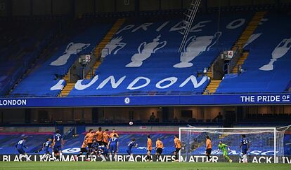 Londres, Inglaterra, 26 de Julio 2020. Mal cierre de temporada para los Wolves. El equipo de Raúl Jiménez tuvo una deslucida actuación en Stamford Bridge al caer ante el Chelsea (2-0) en la última jornada de la Premier League gracias a los goles de Mason Mount y Olivier Giroud, ambos en tiempo de compensación antes de finalizar la primera parte.