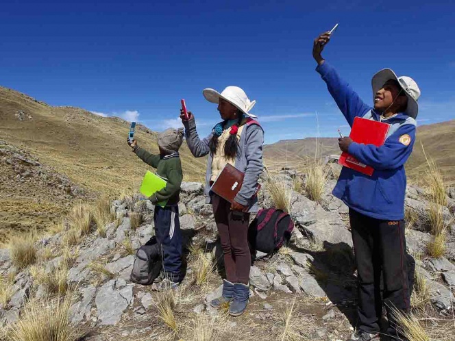 En este remoto lugar del altiplano peruano, a 4 mil metros sobre el nivel del mar, la plataforma “Aprendo en casa” diseñada por el Ministerio de Educación debido a la suspensión de clases presenciales por la pandemia del coronavirus, bien podría llamarse “aprendo en el cerro”.
