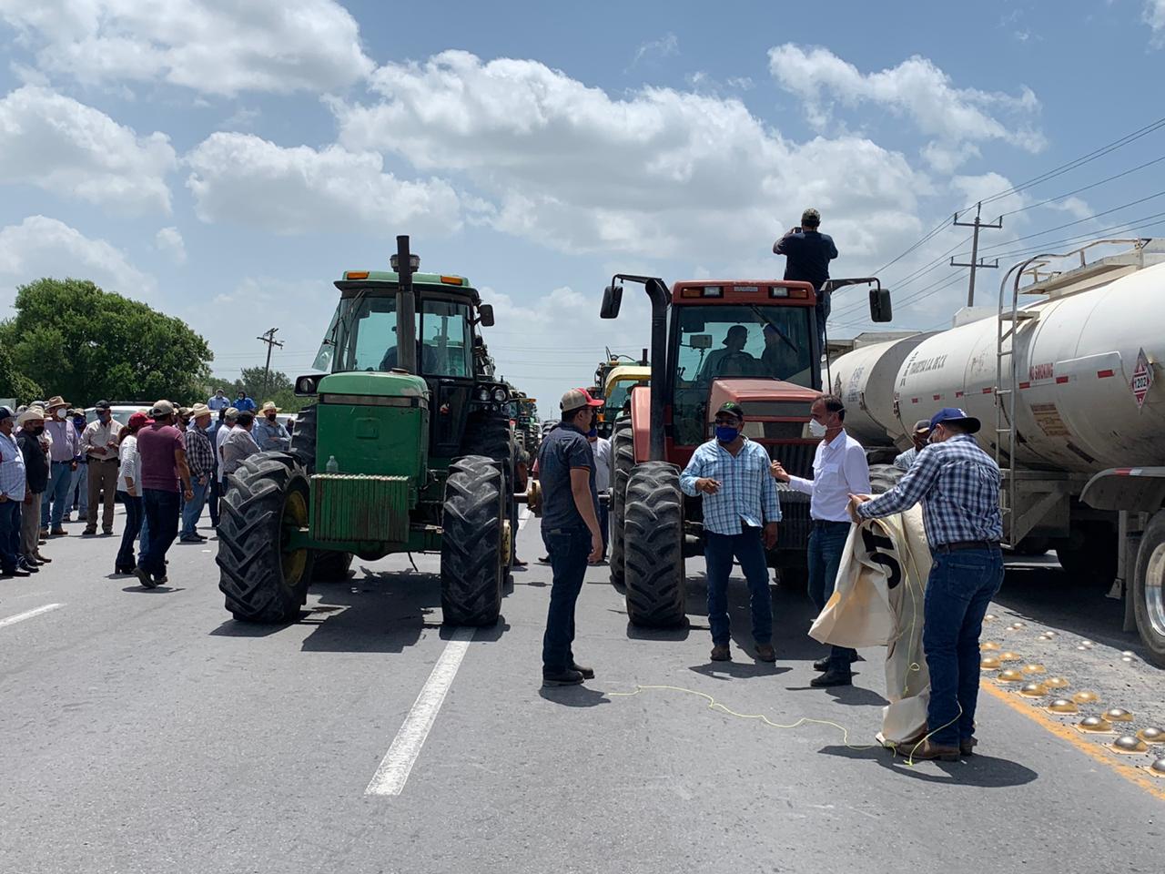 La concentración de caravanas de vehículos y maquinaria se dio en la Brecha 102 de la carretera Río Bravo-Reynosa, frente a la SADER, a donde se suponía acudirían funcionarios federales y estatales del ramo agropecuario, para informarles de los avances de las gestiones, pero los dejaron plantados.