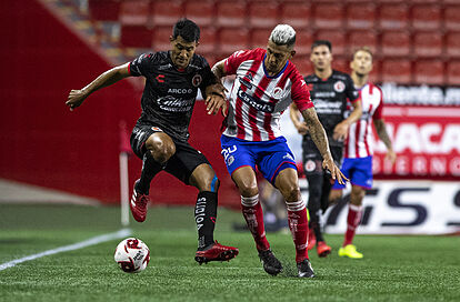 Mauro Quiroga fue de lo más destacado en el primer tiempo, donde Ariel Nahuelpan se salvó de la expulsión tras una falta sobre el mismo delantero de los potosinos y donde los Xolos tuvieron la posesión del esférico mayor tiempo pero sin mostrar una idea clara a la ofensiva.