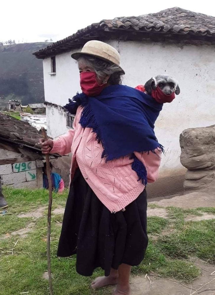 Es una anciana de Perú, que carga a su perrito en la espalda, mientras ambos usan mascarilla. Enamoraron a las redes sociales e incluso les dedicaron una ilustración. Refleja sabiduría, mesura y precaución.