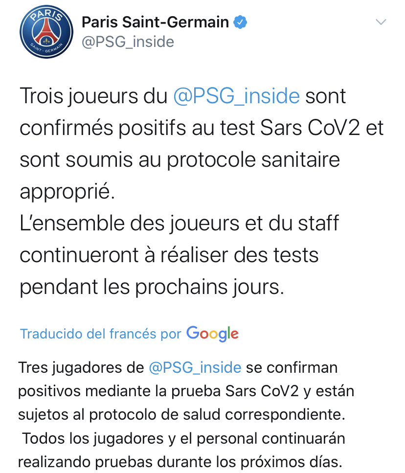 Por lo tanto, Neymar, Leandro Paredes y Di María deberán estar ahora al menos 15 días aislados antes de sumarse a la disciplina del PSG.
