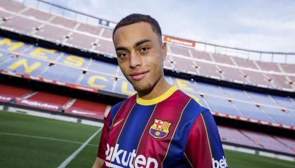 Barcelona, España, 01 de Octubre 2020. El Barcelona hizo oficial el fichaje de Sergiño Dest. El joven lateral derecho se integrará a la plantilla dirigida por Ronald Koeman de manera inmediata ya que se encontraba en Barcelona desde el pasado martes. El club azulgrana pagó 21 millones más 5 en variables y el estadounidense firma por los próximos cinco años con una cláusula de 400 millones.