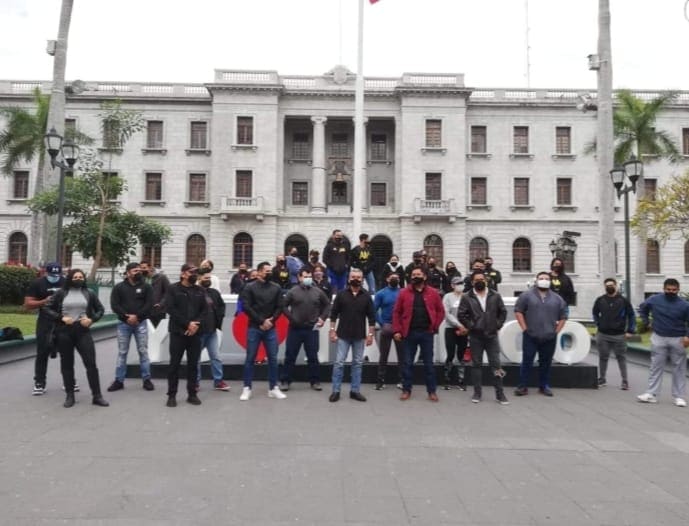 TAMPICO, TAMAULIPAS, 16 DE ENERO DE 2021.- Dueños de gimnasios de la zona sur se manifestaron este sábado frente a la presidencia municipal porteña para protestar porque de acuerdo al nuevo decreto sanitario los volvieron a cerrar y deberán permanecer así al menos durante 15 días, lo que dicen viene a “pegarles” severamente en su economía pues recién acababan de regresar de una suspensión de 6 meses, periodo en el que generaron desempleo y problemas económicos a quienes se dedican a este negocio, por lo que ahora piden que les dejen trabajar aunque sea con horario restringido.