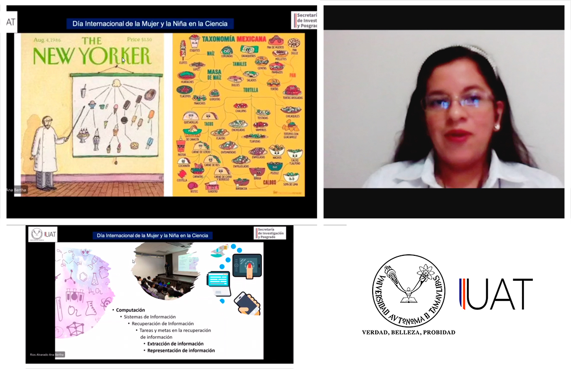 La Doctora Ana Bertha Ríos expuso el tema en el conversatorio virtual realizado en el marco del Día Internacional de la Mujer y la Niña en la Ciencia, que organizó la Secretaría de Investigación y Posgrado de la UAT.
