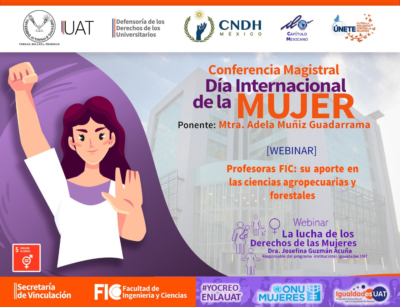 CD. VICTORIA, TAMAULIPAS, 5 DE MARZO DE 2021.- La Universidad Autónoma de Tamaulipas (UAT), ha programado una serie de actividades que se realizarán por la vía virtual, con motivo del Día Internacional de la Mujer que se conmemora este lunes 8 de marzo.