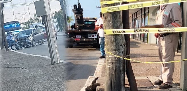 El percance automovilístico causó daños al cableado eléctrico que ocasionó que en la zona se quedarán sin luz.