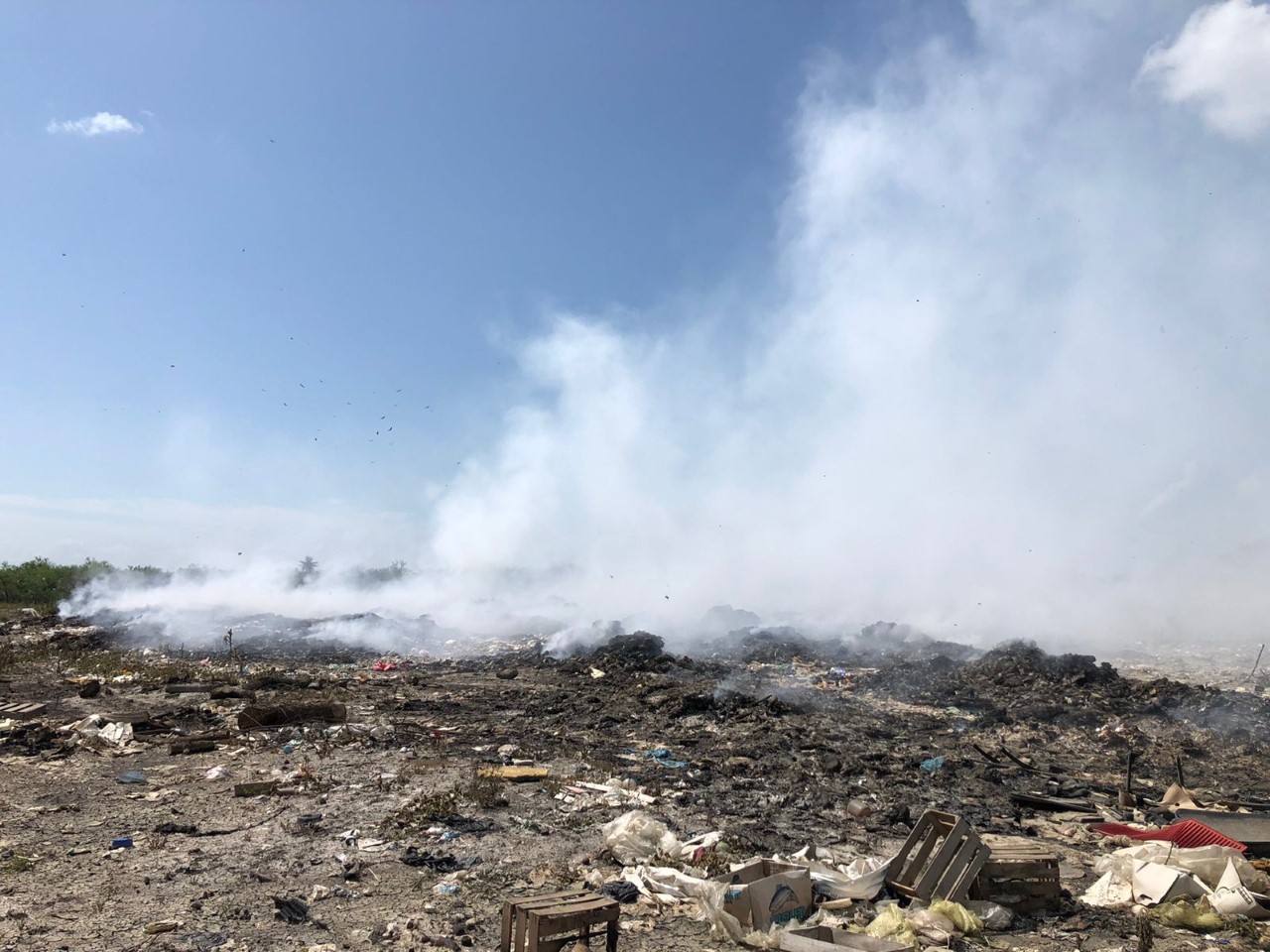 Se trabajó en delimitar el área afectada por el fuego para evitar que se extendiera a otra zona del relleno sanitario. Esta actividad no afecta el uso del basurero municipal.