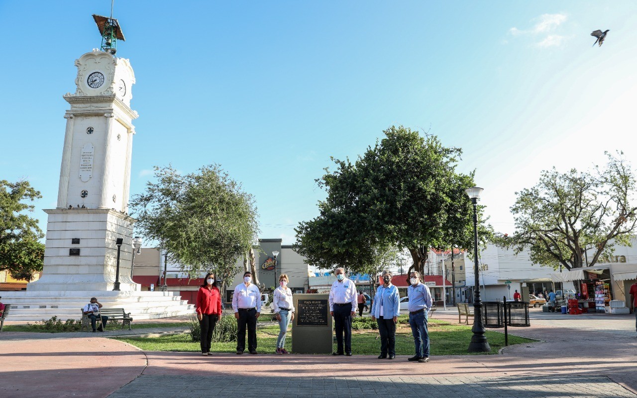 “Hace dos meses iniciamos una visita e indiscutiblemente decidimos hacerle una rehabilitación a esta plaza Hidalgo, ya estamos viendo los resultados con un reloj nuevo, con unas bancas pintadas, con árboles nuevos, césped, es otra armonía que tiene ya de la plaza Hidalgo”, señaló.