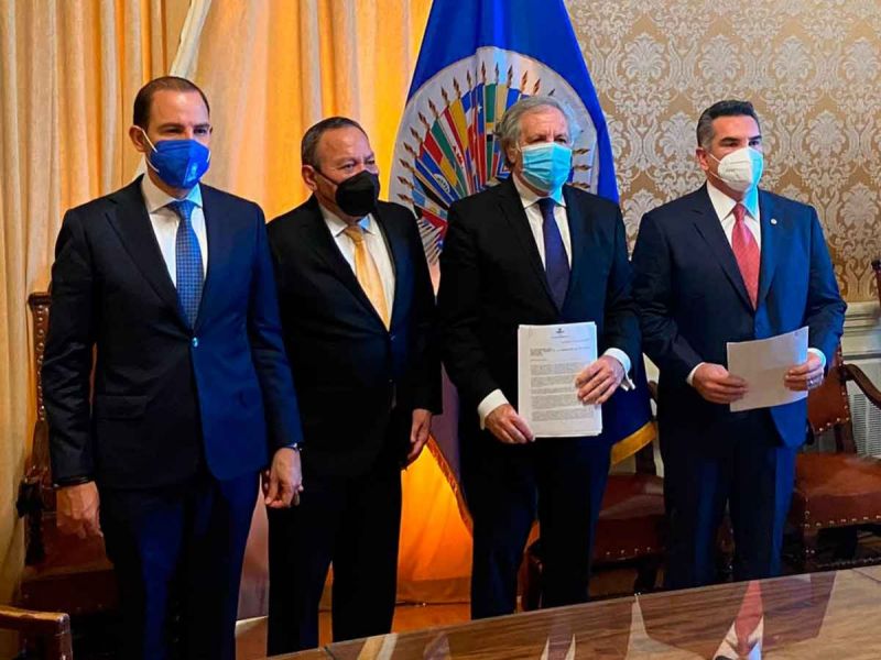 Mediante sus redes sociales, Marko Cortés, líder de Acción Nacional; Alejandro Moreno, del tricolor; y Jesús Zambrano, del sol azteca, informaron acerca de la denuncia que entregaron al secretario General de la OEA, Luis Almagro.