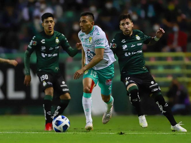 LEON, GUANAJUATO, 21 DE AGOSTO DE 2021.- En un gran duelo de la jornada 6, León y Santos empataron 1-1, con polémicas, penales, faltas y remates de alarido, en el que ya ha sido denominado como el partido de la temporada.