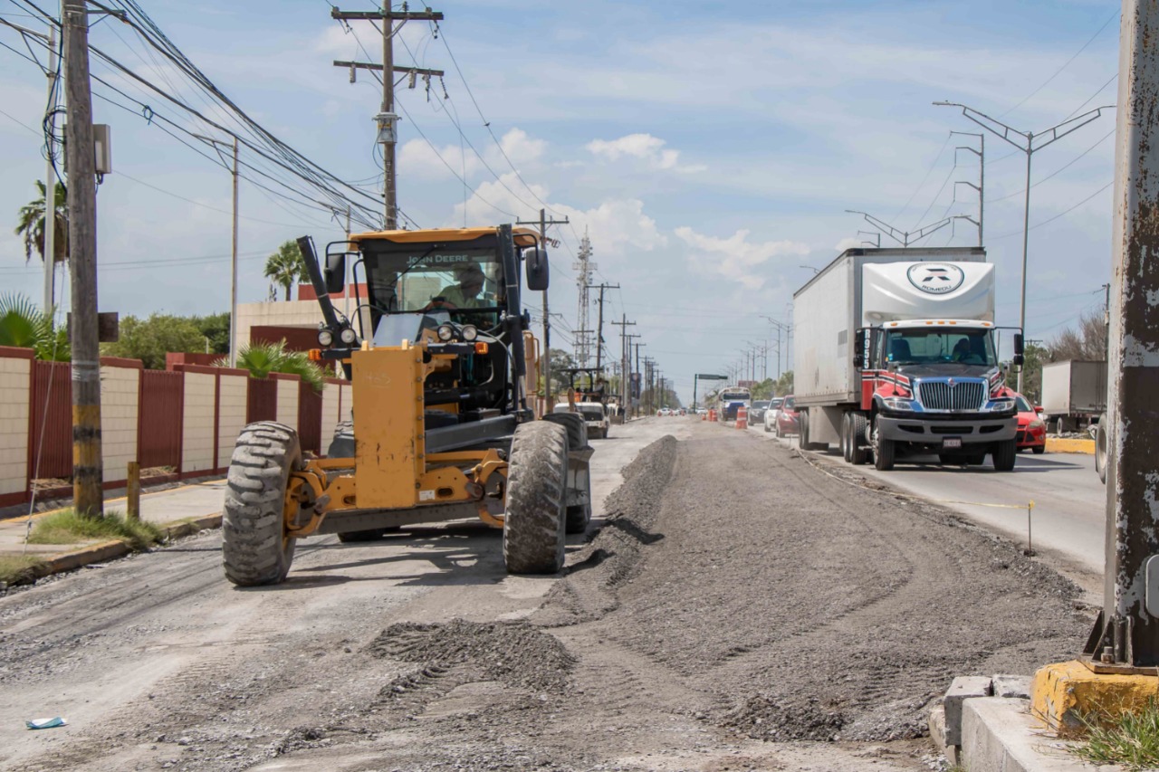 Matamoros, Tamaulipas (28 de agosto de 2021).- El Gobierno de Matamoros trabaja en la última etapa de la rehabilitación y modernización de la avenida Lauro Villar, acceso que garantiza a más de 50 mil automovilistas una mejor movilidad vehicular y que en un futuro será una de las vialidades que utilizará el metrobús.