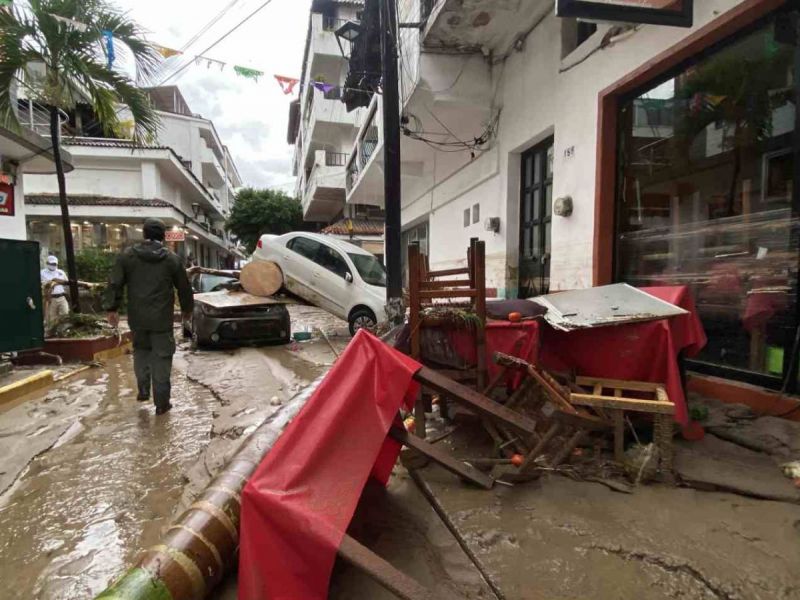 Varias colonias se inundaron y se reportó el desplome parcial de un edificio en el centro de Vallarta. En Boca de Tomatlán se reportó el desbordamiento del río Tomatlán.