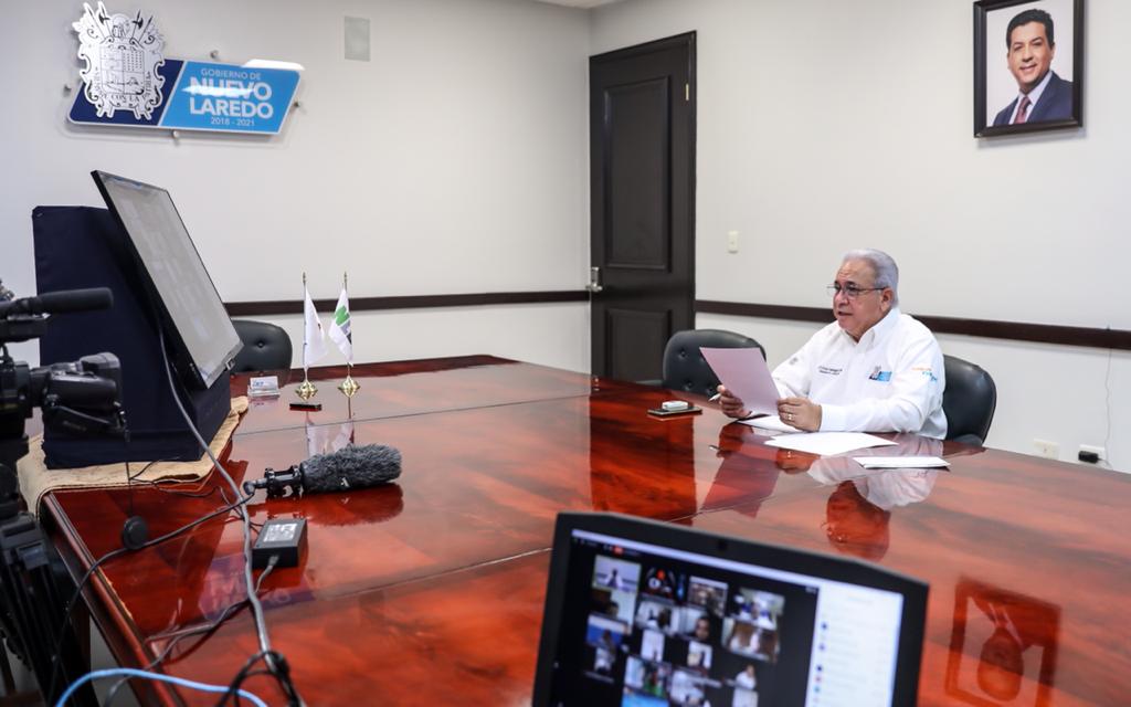 NUEVO LAREDO, TAMAULIPAS, 16 DE AGOSTO DE 2021.- Debido a que los contagios de Covid-19 mantienen una tendencia a la alza y al aumento de personas hospitalizadas, el alcalde Arturo Sanmiguel hizo un firme exhorto a la población a que se siga cuidando.