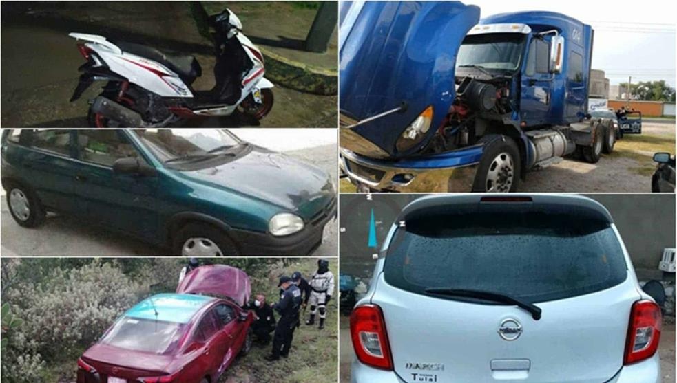 También, un vehículo Chevrolet Chevy con matrícula del estado de Hidalgo, el cual fue localizado en la comunidad de San Francisco Bojay y una motoneta Italika sin placas asegurada en el bulevar Tula – Iturbe, los tres vehículos con reporte de robo según el sitio de consulta de placas vehícular REPUVE.