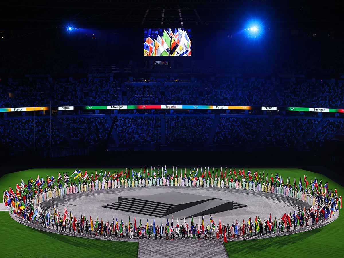 Todas las banderas, después del izado de la de Japón, fueron entrando en el recinto, muchos protagonistas en estas dos semanas desfilaron como abanderados, como el italiano Marcell Jacobs, sorprendente campeón de 100 y 4×100 metros; o la neerlandesa Sifan Hassan, oro en 5000 y 10000 metros y bronce en 1500, antes de que comenzase el espectáculo de luz y color en el estadio.