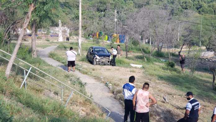 Ciudad Victoria, Tamaulipas (5 de septiembre de 2021).- El exceso de velocidad con que maneja su vehículo un empleado, fue la causa para que perdiera el control del volante y cayera a la plaza del Estudiante.