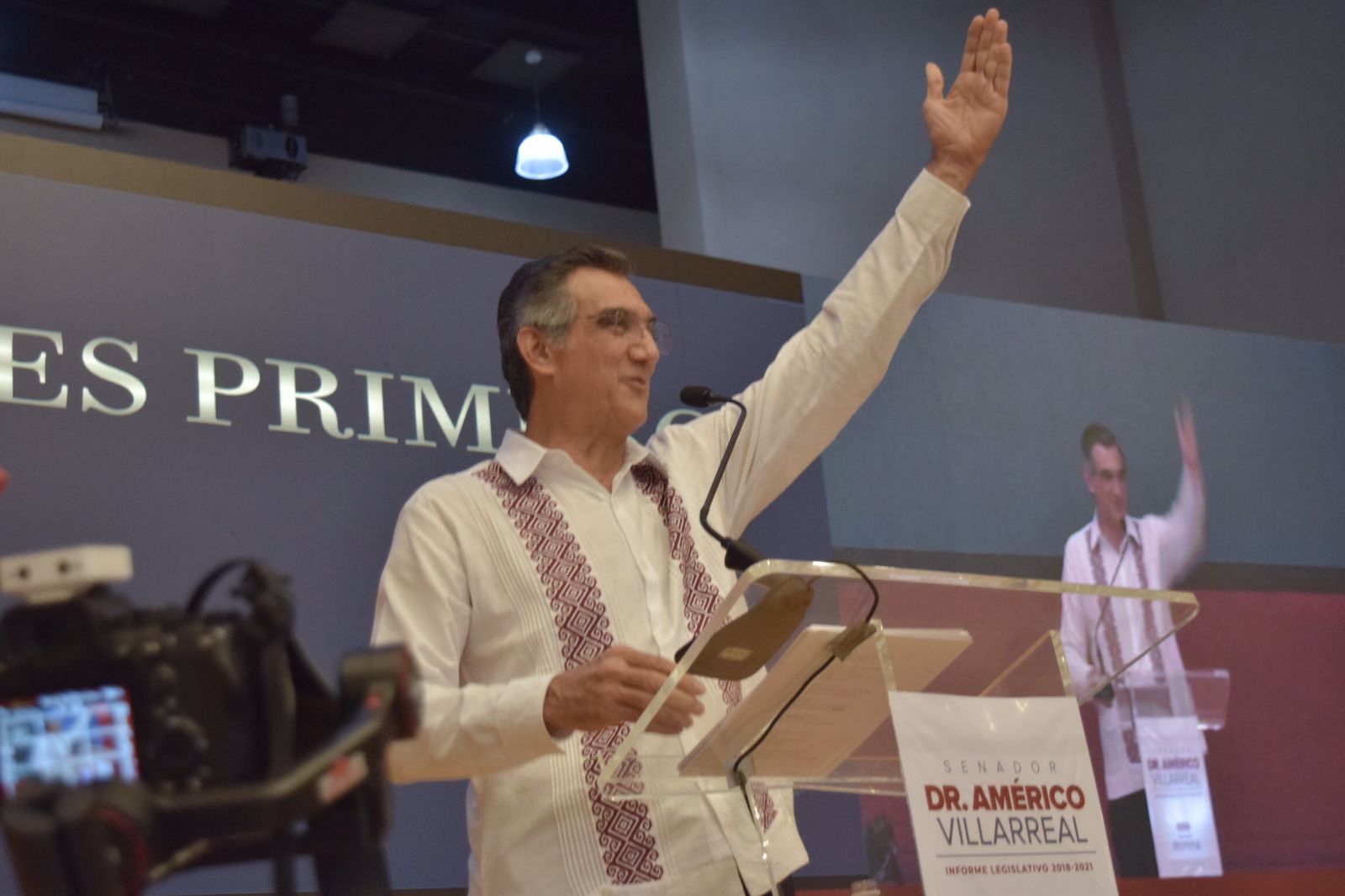 Ciudad Victoria, Tamaulipas (6 de septiembre de 2021).- Desde Morena, se logrará un proyecto de unidad y el interés de los tamaulipecos prevalecerá; la transformación es irreversible en el Estado, afirmó el senador Américo Villarreal Anaya, al rendir su tercer informe legislativo, en donde aseguró que por razones políticas, Tamaulipas va en una dirección opuesta a la Cuarta Transformación.