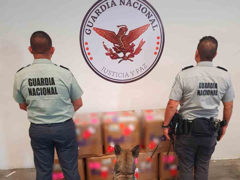 La Guardia Nacional informó que los caninos al realizar inspecciones de prevención del delito localizaron el peyote en una empresa de mensajería y paquetería en el municipio de Santa Catarina