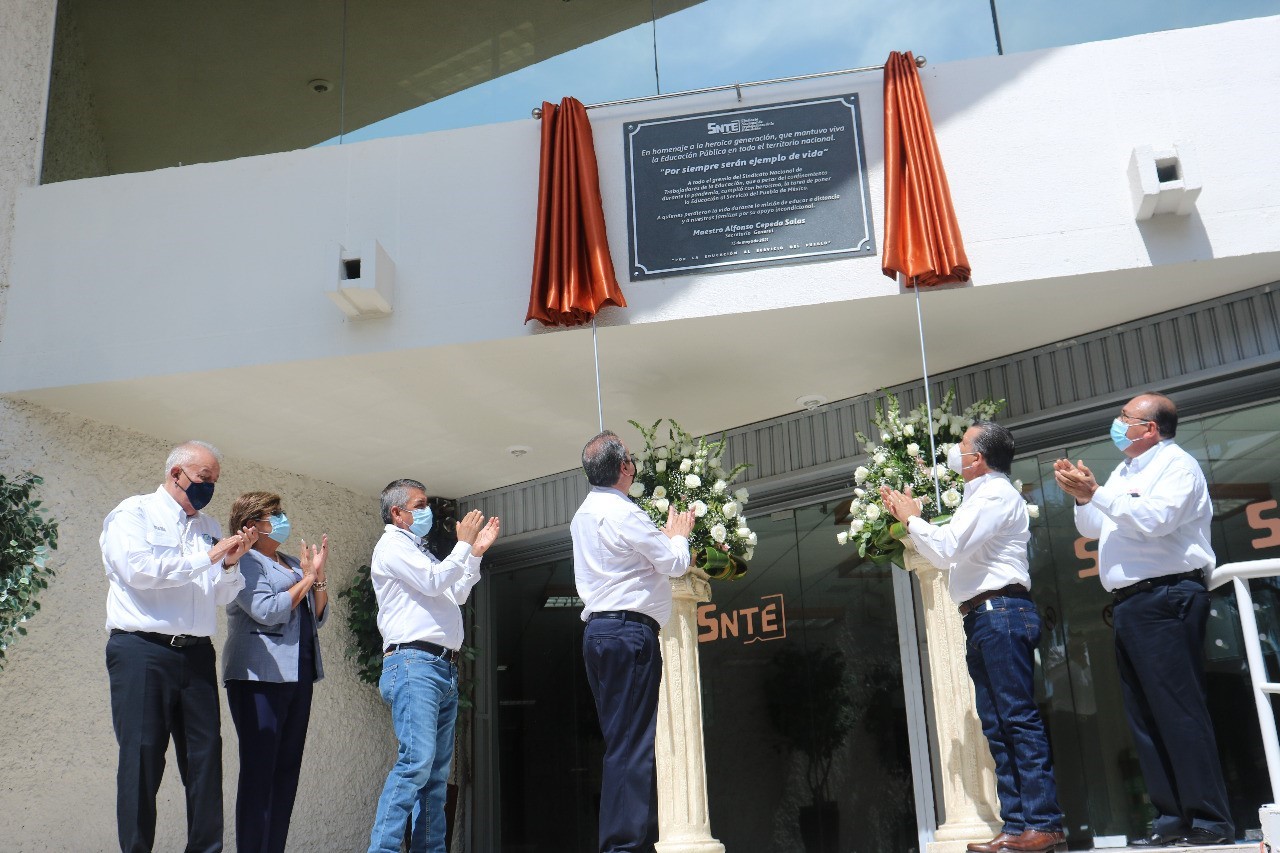 CD. VICTORIA, TAMAULIPAS, 7 DE SEPTIEMBRE DE 2021.- Con la develación de una placa en la sede nacional y en cada sección del país, el Sindicato Nacional de Trabajadores de la Educación (SNTE), rindió un homenaje a la heroica generación, que mantuvo viva la educación pública en el territorio nacional y a los trabajadores que perdieron la vida durante la misión de educar a distancia, quienes por siempre serán ejemplo de vida.