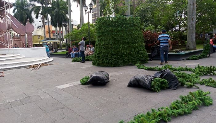 TAMPICO, TAMAULIPAS, 20 DE NOVIEMBRE DE 2021.-Aproximadamente 2 mil 500 Nochebuenas son instaladas ya en distintos sitios públicos de la ciudad al igual que luces en avenidas principales y pinito en plaza de armas con la finalidad de que Tampico esté debidamente adornado para la realización de las fiestas de