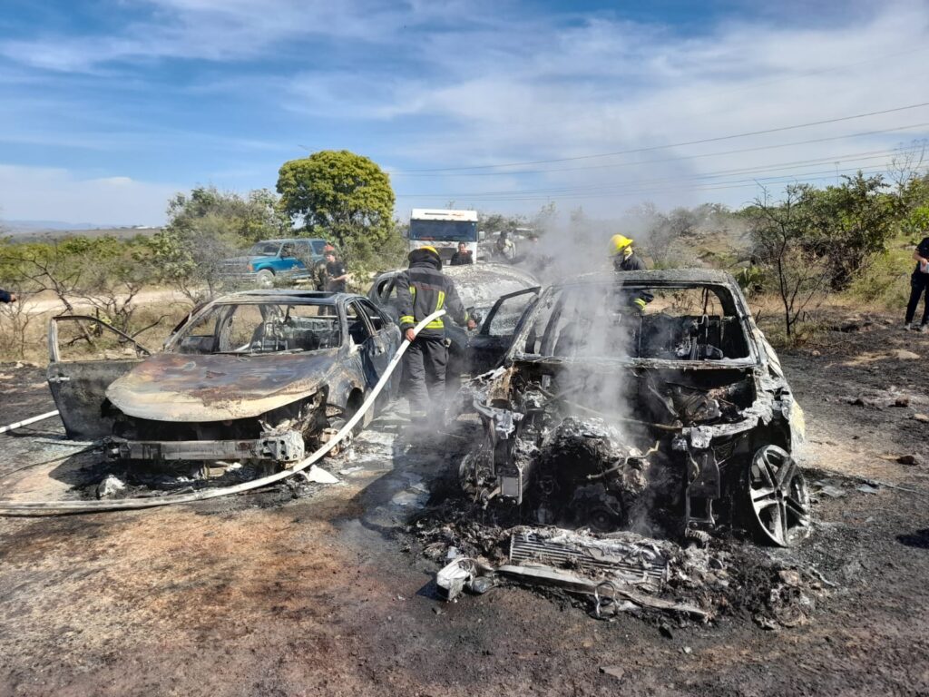 En el lugar se encuentran totalmente calcinados vehículos tipo Honda CR-V, un Toyota Cambry y un BMW.