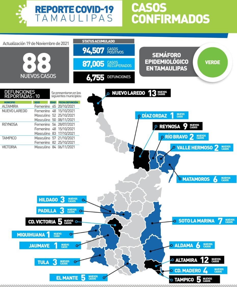 88 nuevos contagios y 10 fallecimientos por COVID-19, informó en su reporte
