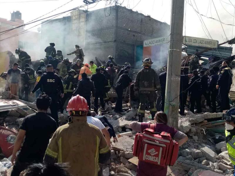 Al parecer, la explosión se debió a la acumulación de gas LP, tras un fuerte estruendo colapsó el inmueble en el que viven varias familias.