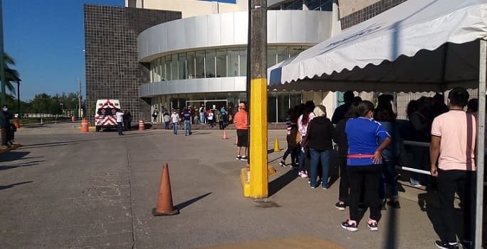 Tampico, Tamaulipas, 29 de noviembre de 2021.- Abarrotado se vio desde temprana hora el Polideportivo de esta ciudad en el inicio de la jornada de vacunación para adolescentes de 15 a 17 años de edad y es que tenían que acudir acompañados de un adulto, lo que hizo más larga la fila. En esta primera dosis que