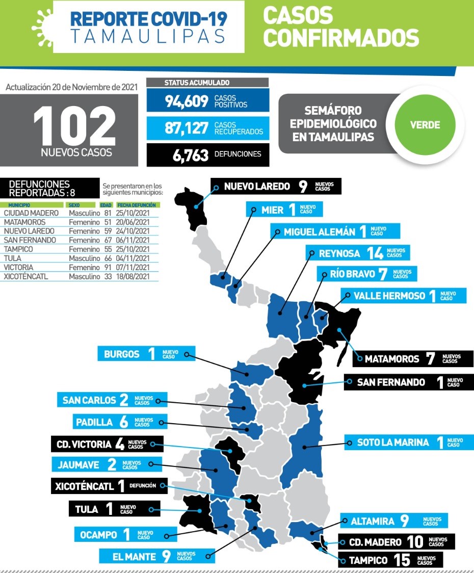 COVID-19 y 8 fallecimientos asociados a complicaciones graves por el virus, por lo
