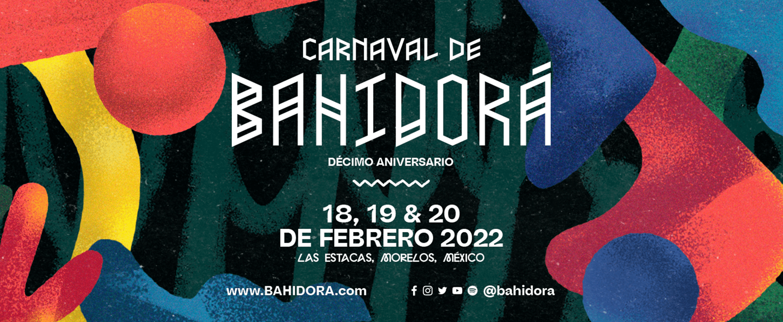 El día de hoy se lanzo el comunicado de que oficialmente el carnaval de Bahidorá estará presente en el 2022 en Las Estacas, Morelos. Y aunque su line up aún no salga a luz se espera algo en grande debido a que este festival cumple 10 años de lanzamiento.