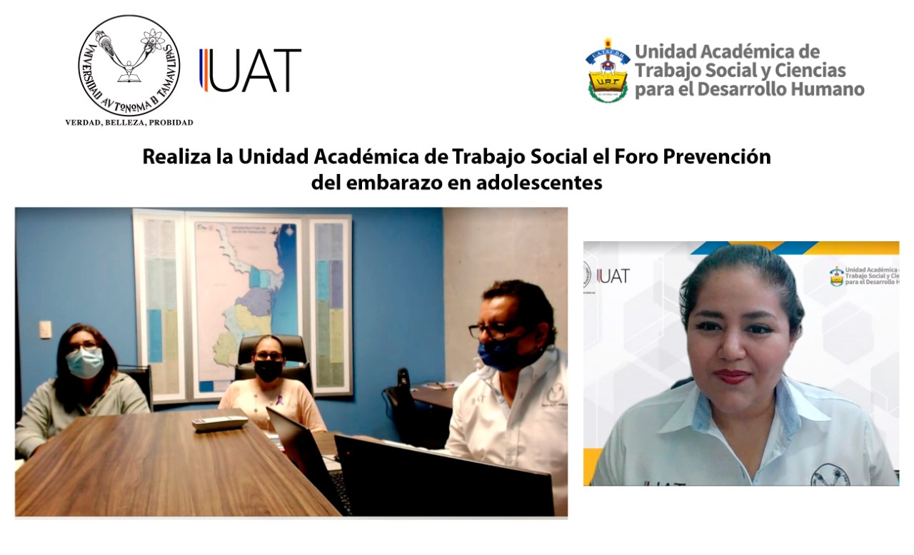 CD. VICTORIA, TAMAULIPAS, 21 DE NOVIEMBRE DE 2021.- La Unidad Académica de Trabajo Social y Ciencias para el Desarrollo Humano (UATSCDH) de la Universidad Autónoma de Tamaulipas (UAT) realizó el foro “Prevención del embarazo en adolescentes desde el abordaje biopsicosocial”, con el propósito de concientizar a la