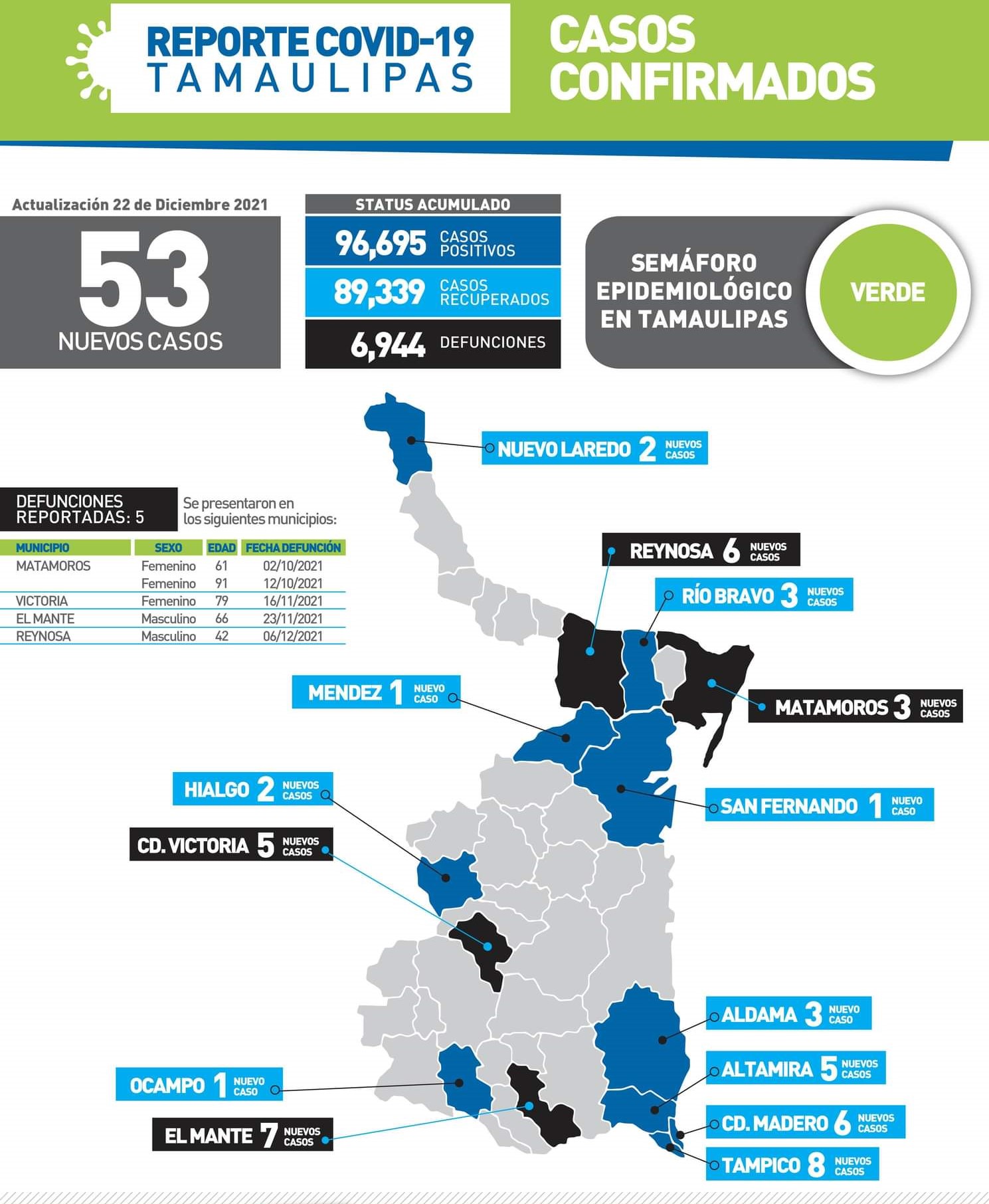 Muere de Covid hombre de 42 años en Reynosa; 53 nuevos contagios en Tamaulipas