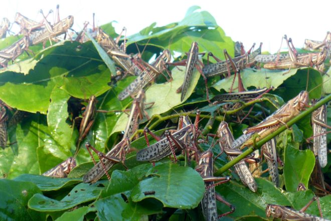 Se recomienda a los productores tener en sus predios productos como cipermetrina o melaza, para combinar con productos que están facilitando las autoridades de Sanidad Vegetal, con el fin de combatir y controlar la plaga de langostas.